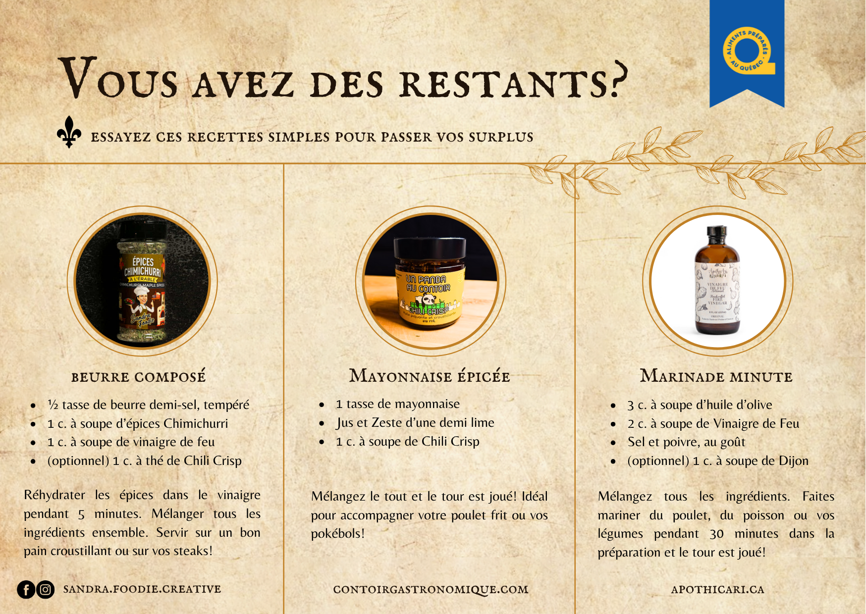 La Boîte Chimichurri Parfait met de l’avant une collaboration entre trois artisans québécois passionnés. Ensemble, nous avons créé un coffret BBQ unique, conçu pour rehausser vos grillades et célébrer le savoir-faire local.