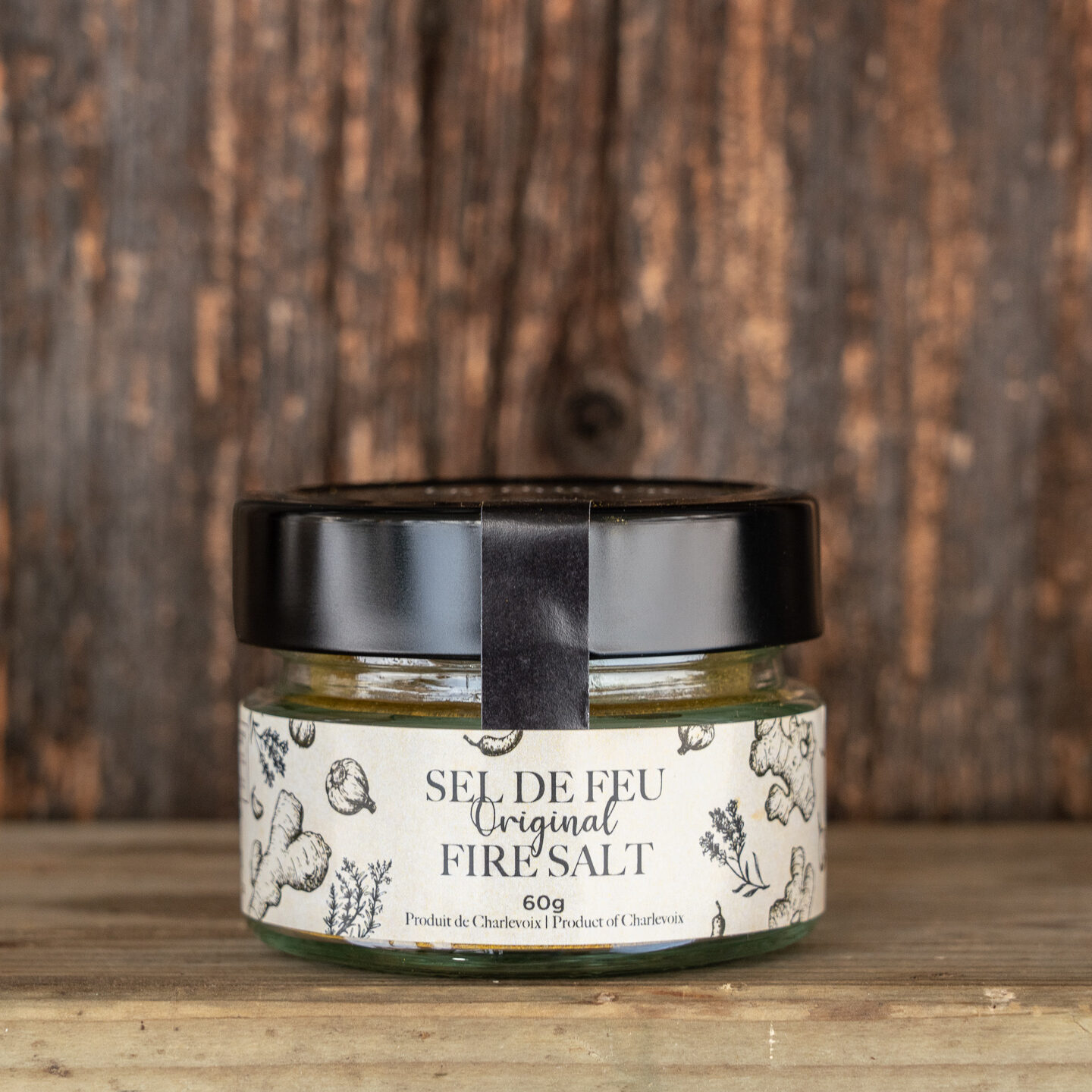 Le Sel de Feu est une combinaison entre notre Épice de Feu et un sel marin biologique. L’Épice de Feu, quant à elle, est une revalorisation des ingrédients macérés du Vinaigre de Feu ApothicAri. Une fois notre Vinaigre de Feu terminé, le gingembre, le curcuma, l’ail, les oignons, le raifort, le piment et les herbes du jardin sont retirés du vinaigre pour être ensuite déshydratés et moulus. Une fois combinés au sel marin, nous obtenons un sel aromatisé délicieux et totalement unique.